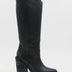side view of black macao knee high boots with stacked high heel