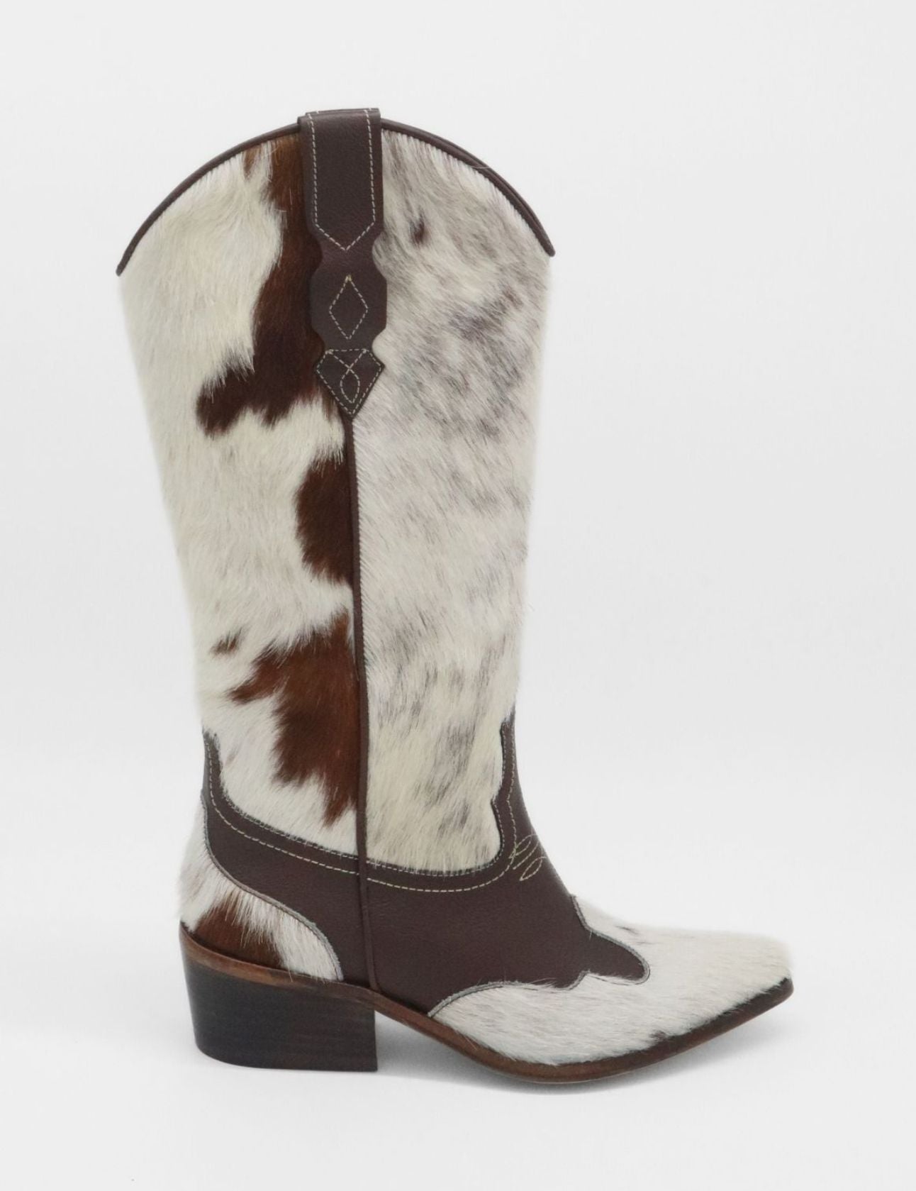 Uniquely Yours – Crafted from natural hair-on cowhide leather, every pair of Nirvana boots boasts its own distinct pattern and color variations. No two pairs are alike, ensuring you own a truly one-of-a-kind statement piece.