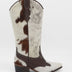 Cowhide brown and ivory cowboy boot with stacked heel and pointed toe - Nirvana by Stivali New York