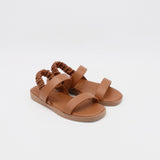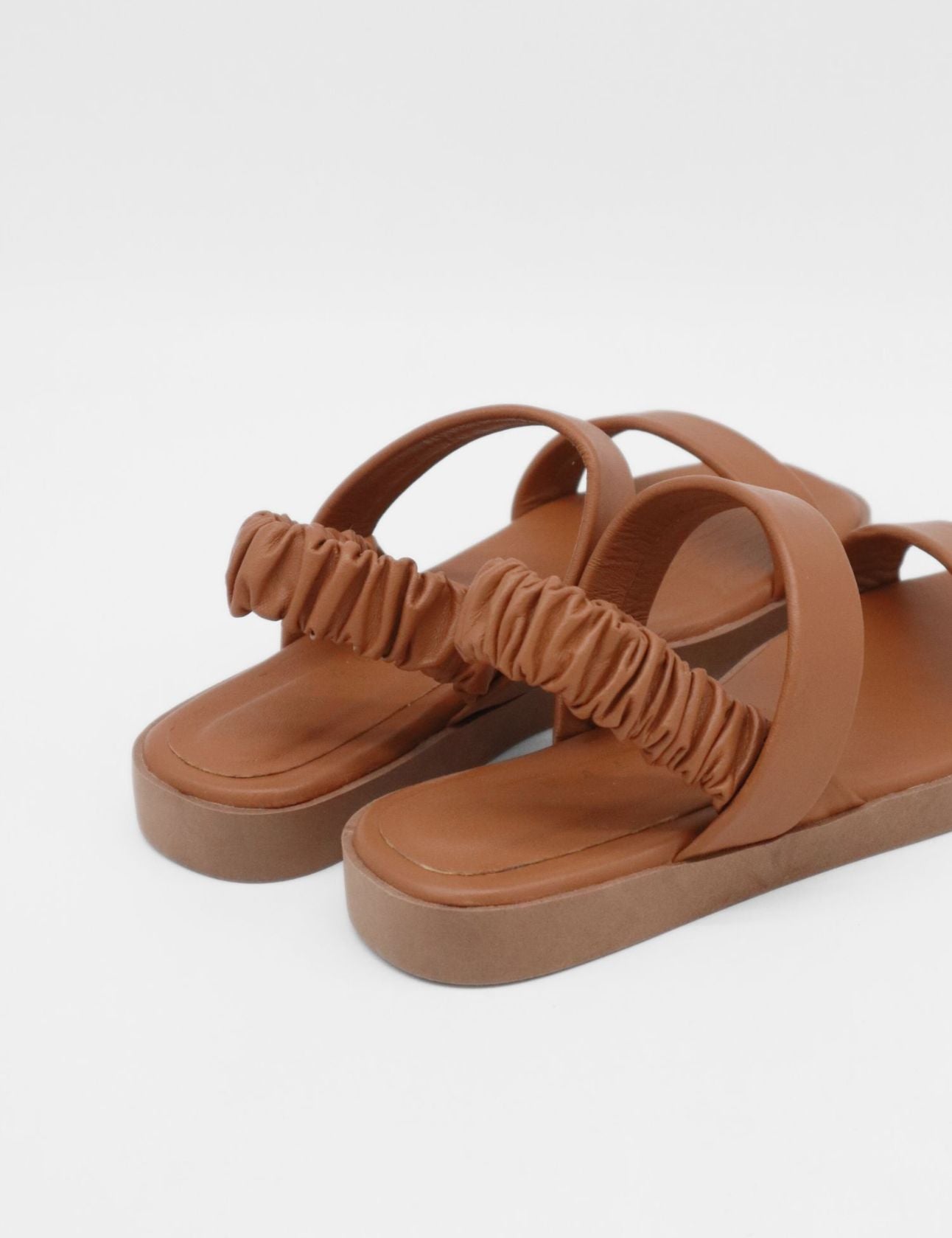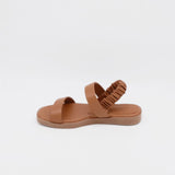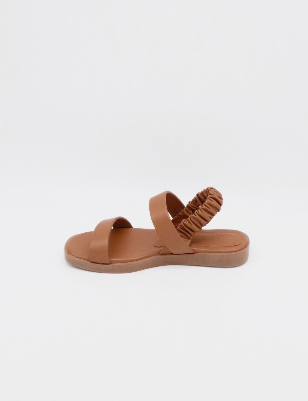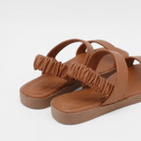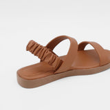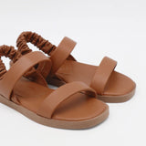 Tan leather dual strap with ruched adjustable back strap sandals  Kavala by Stivali New York