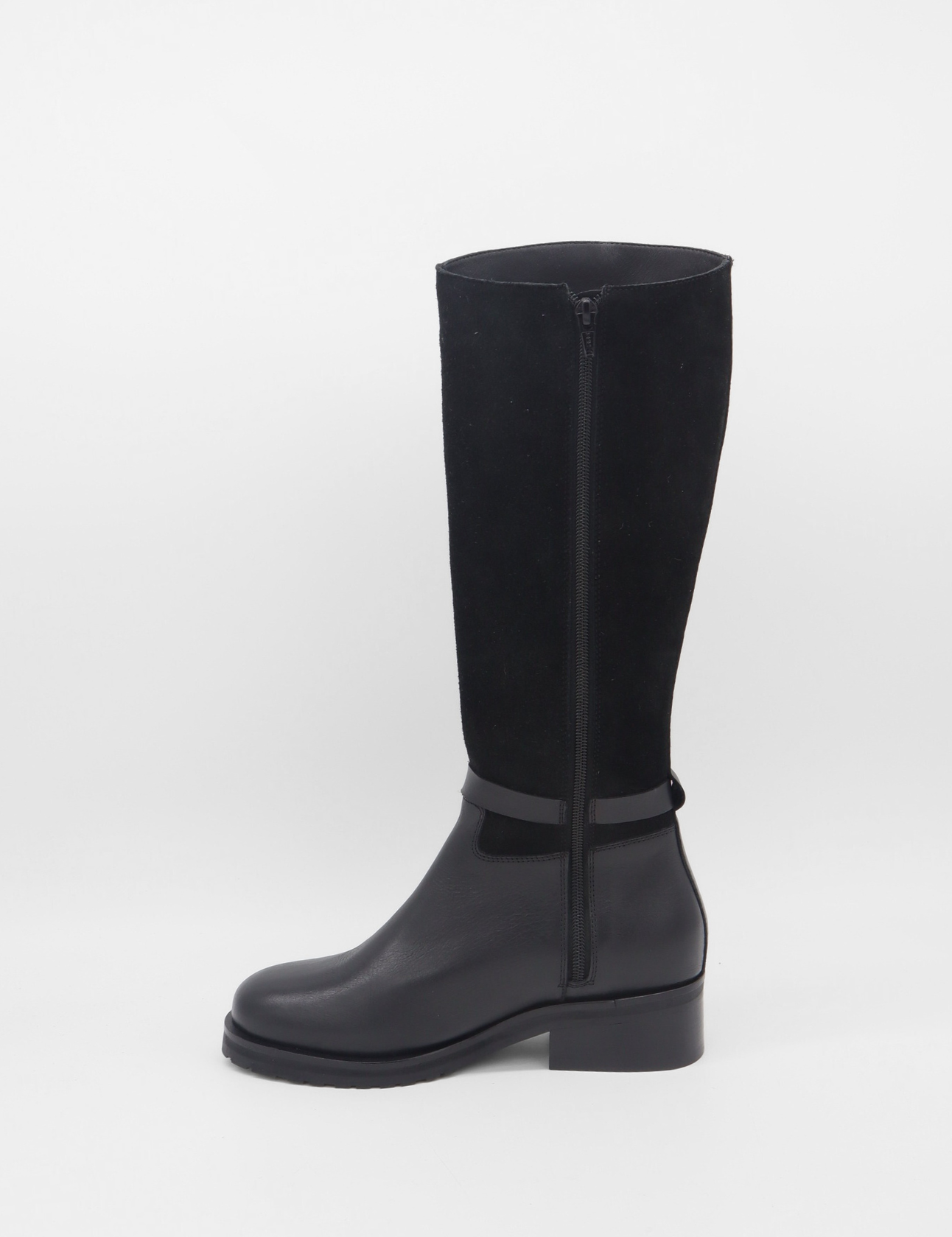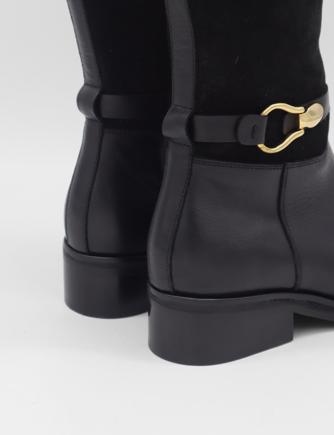 The Amarise Boots embody timeless sophistication with a refined, equestrian-inspired design. This tall silhouette features a smooth leather base and a soft suede upper, creating a harmonious blend of texture and depth. A rounded toe and a gold buckle at the ankle add subtle elegance and structure. Thoughtfully crafted for both style and versatility, the Amarise brings a classic riding-boot spirit to modern everyday wear, effortless, elevated, and enduring.